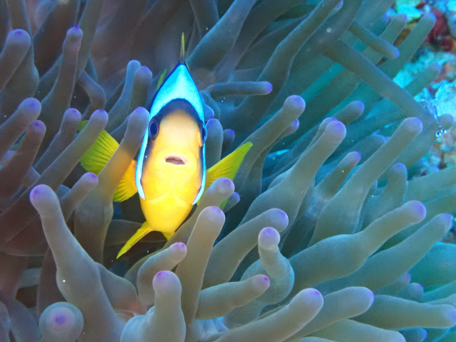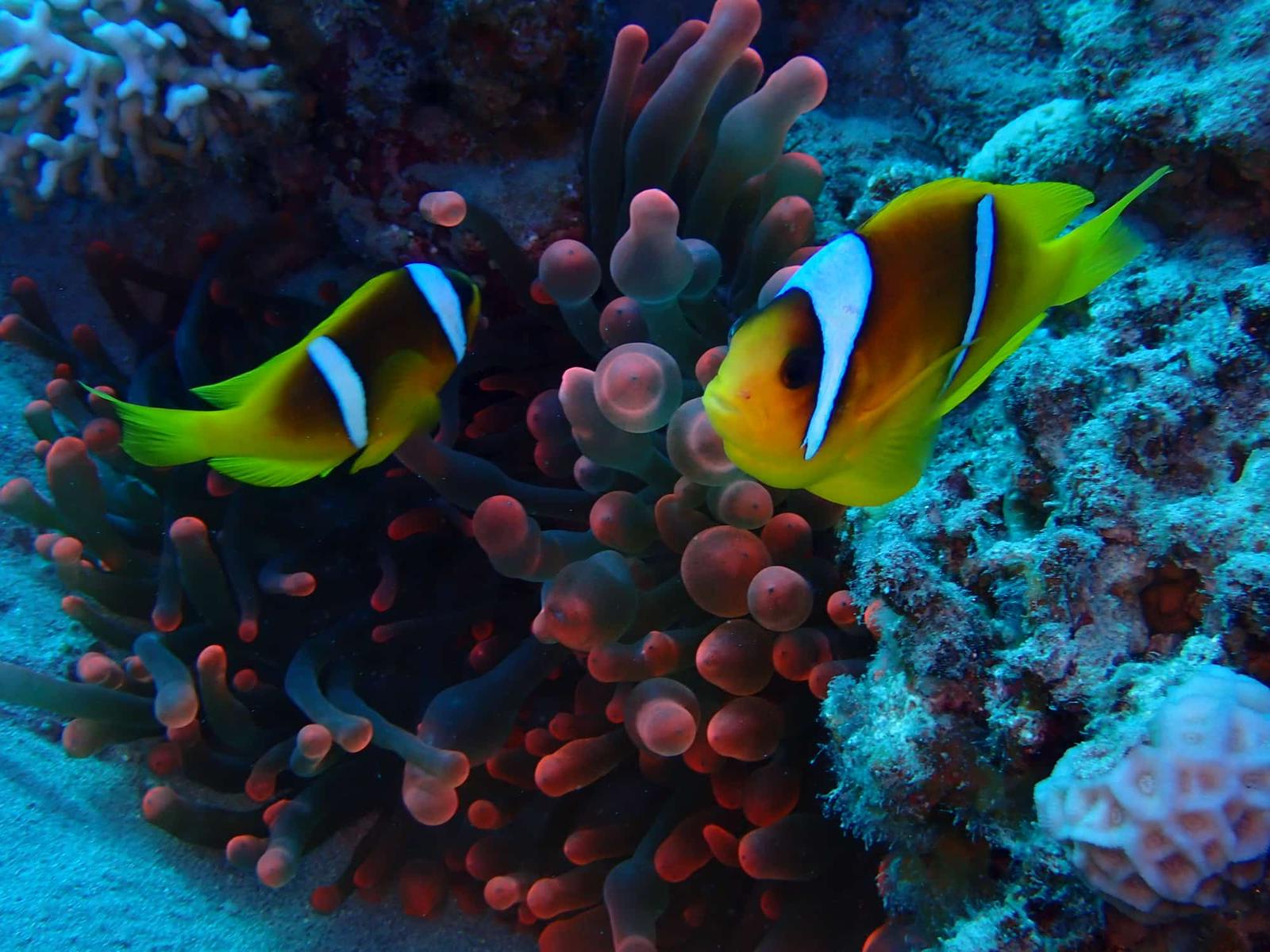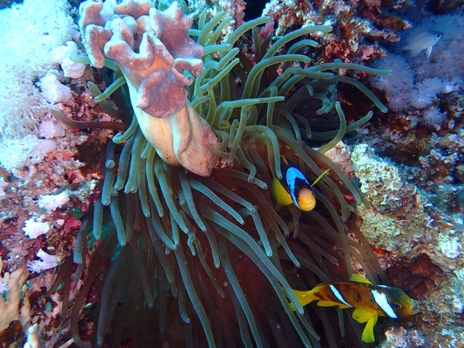 beeindruckend waren die Clownfische („Nemos“) in ihren Anemonen, aber